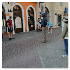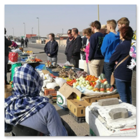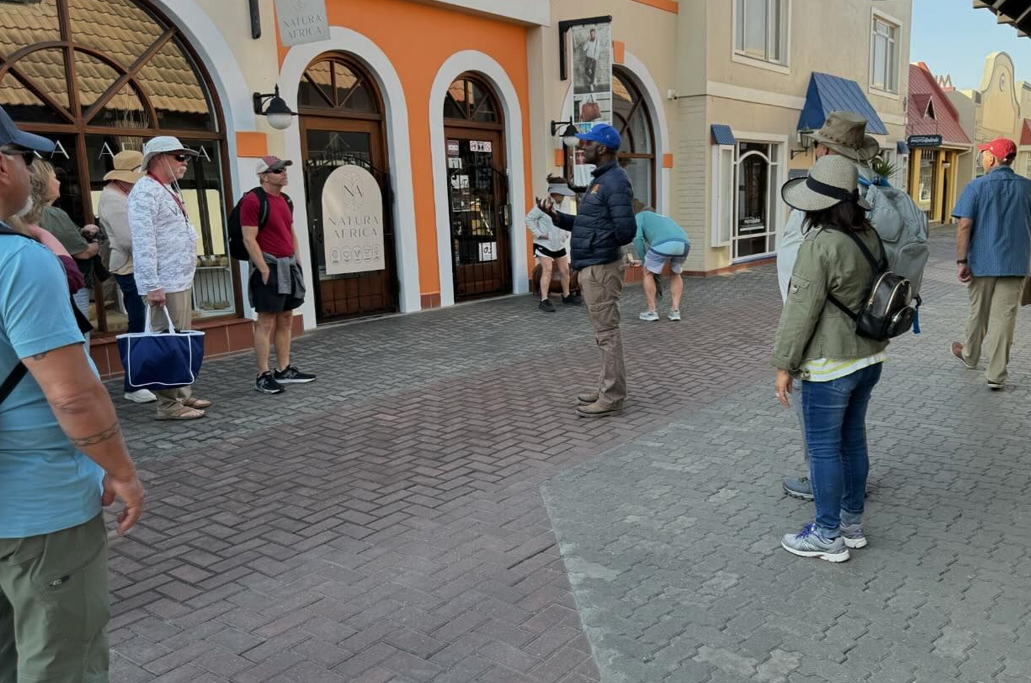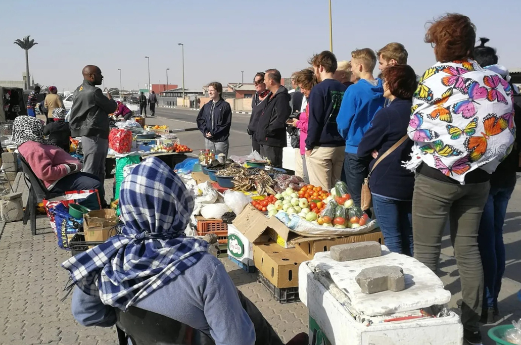 A historic introduction of Swakopmund and tour program briefing on bicycles. Group cycles to the local informal market and introduction to different traditional foods and products on display